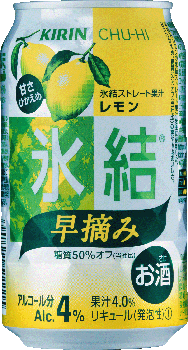 キリン 氷結 早摘みレモン 350缶1ケース 24本入りキリンビール 価格: 2,822円 レビュー評価: 4.56 レビュー数:9 キリン 氷結 早摘みレモン 350ml 24本 1本 112円 早摘みレモンの氷結ストレート果汁を使用した、甘さひかえめ、糖質50%オフの爽やかなおいしさです・・♪ 商品名 キリン 氷結 早摘みレモン 原材料 レモン果汁・ウォッカ・食物繊維・糖類・香料・酸味料・ アルコール度 4% 内容量 350ml 24本 保存方法 直射日光や高温多湿の場所をさけて 保存してください。 栄養成分表示(100mlあたり) エネルギー 33Kcal たんぱく質 0.0g 脂 質 0.0g 糖 質 1.8g 食物繊維 0.4mg ナトリウム 19.9mg アレルギー特定原材料 -350ml Supported by 楽天ウェブサービス |